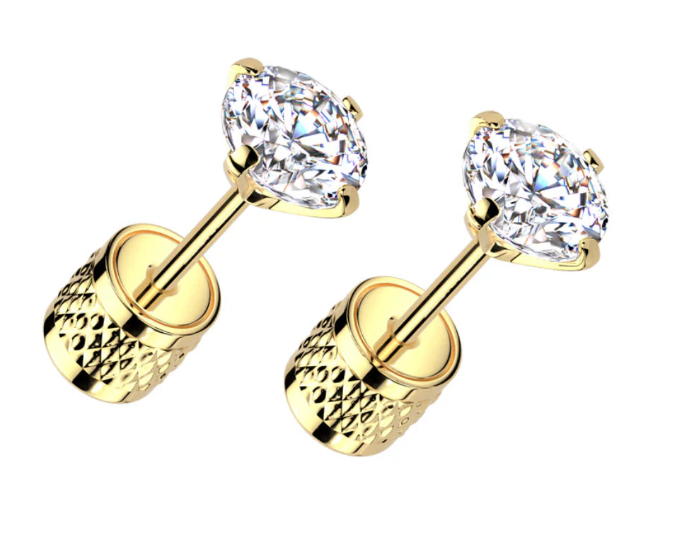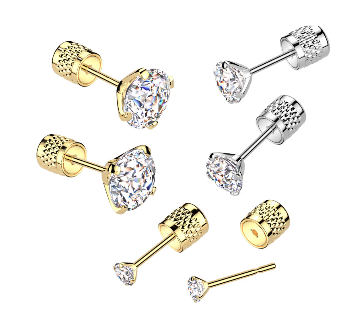 These beautiful earrings have a unique cylinder clip backing that pushes on to the post. You hear an audible click when the back is on tight. And the best part...the backing covers the post, so they don't poke you in the side of the head.