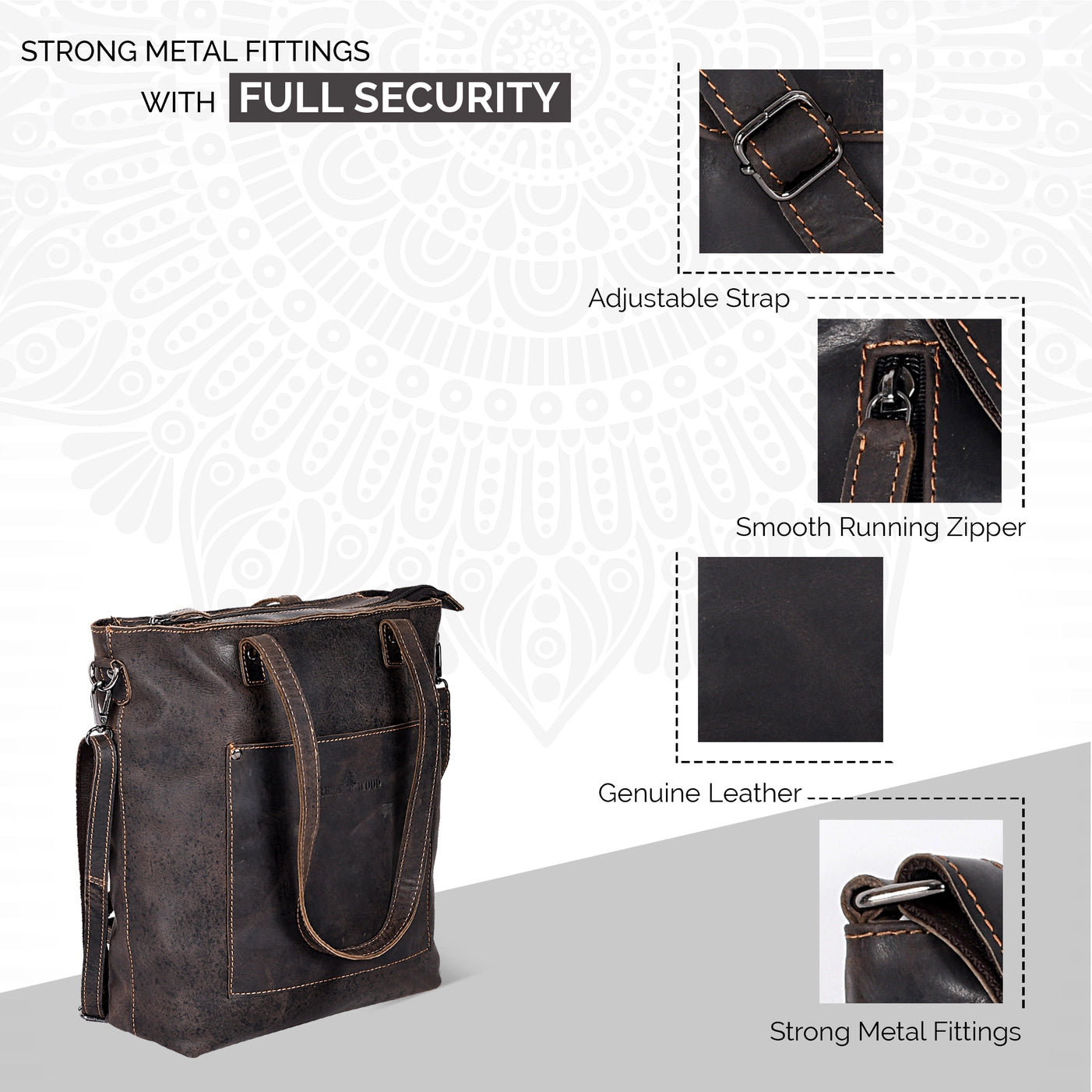 - Full-grain leather